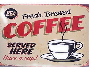 Fresh Brewed Coffee Served Here 25 Cents Have A Cup Sign Etsy